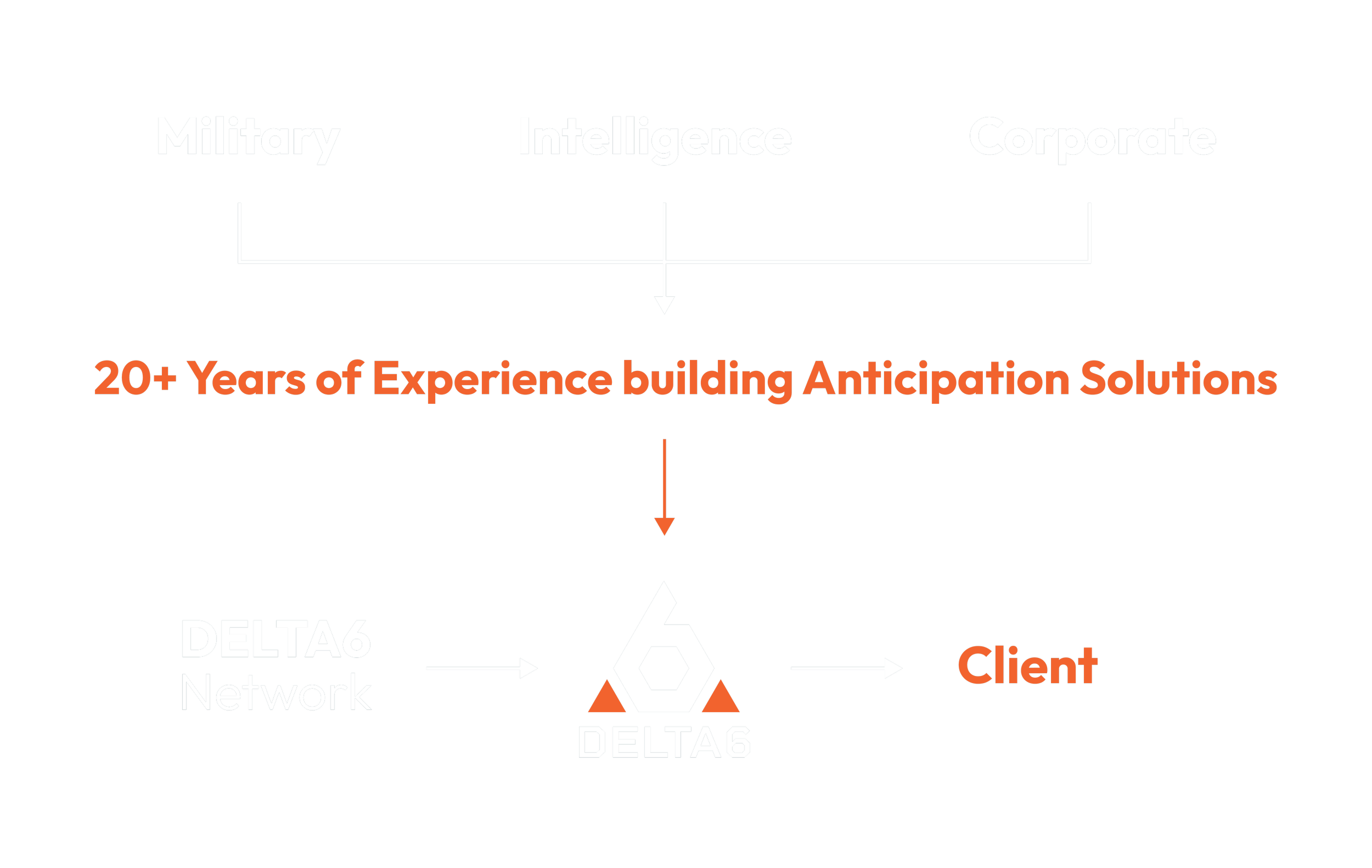 Delta 6 is built on our passion for exploration and finding opportunity —even in the most challenging conditions. Our roots span the worlds of intelligence, military strategy, and corporate leadership. That unique blend and access to a global network of top experts gives us an untraditional perspective, a proven ability to separate signal from noise and delivering a decisive edge to strategic leadership.